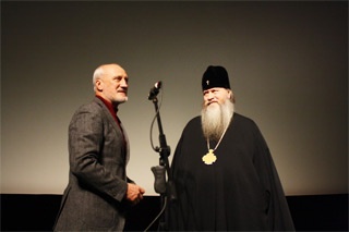 После просмотра фильма на сцену вышли владыка Тихон и Юрий Беляев.