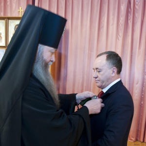 Также до начала собрания, Высокопреосвященнейший Тихон, архиепископ Новосибирский и Бердский, вручил от имени Святейшего Патриарха Московского и Всея Руси Кирилла, награду Русской Православной Церкви – орден святого преподобного Серафима Саровского – Сергею Дмитриевичу Проничеву, генеральному директору ПКА «Сибирский Бальзам», за его многолетнюю помощь Новосибирской Епархии в восстановлении и строительстве храмов и в связи с 60-летием.
